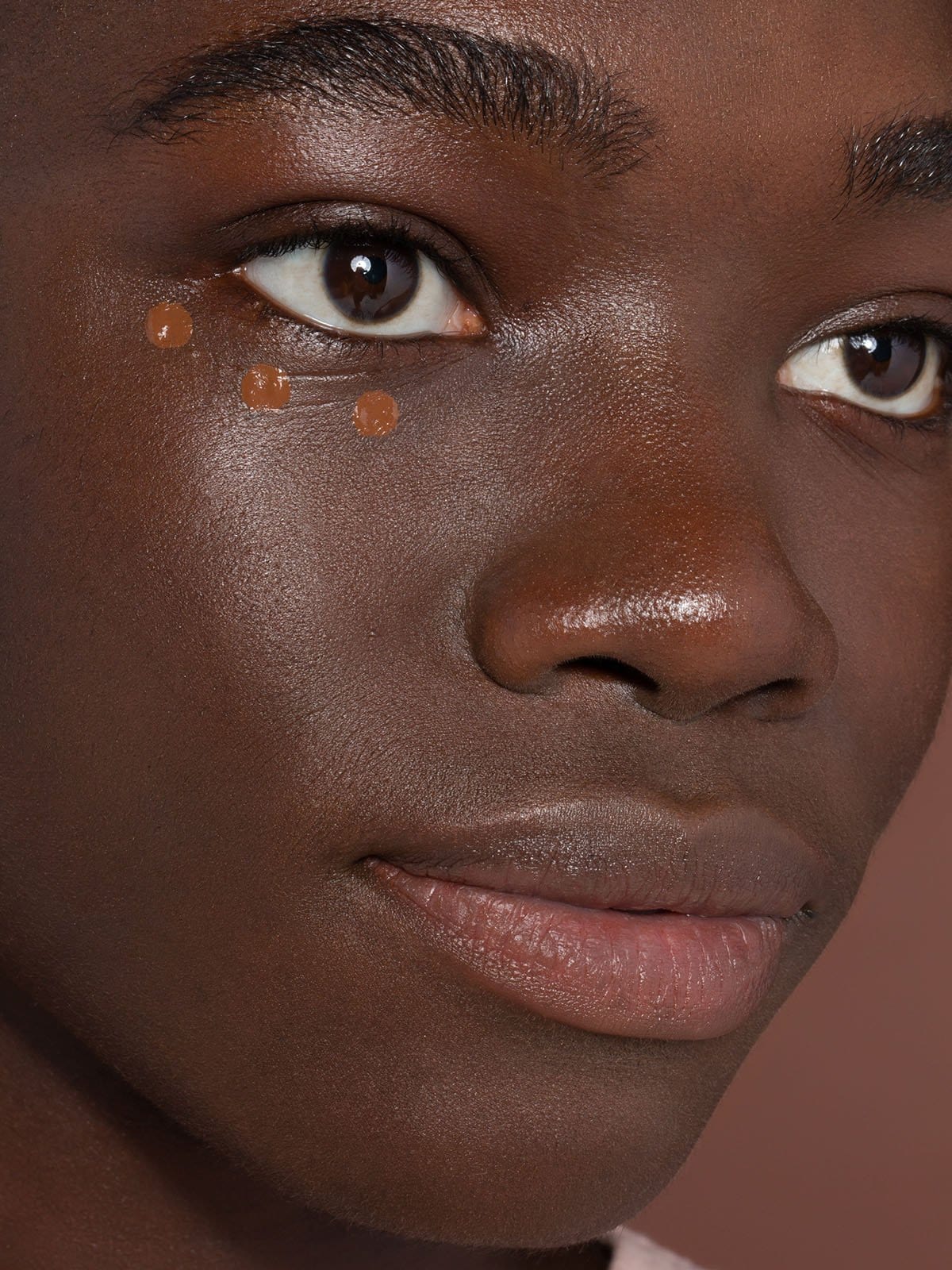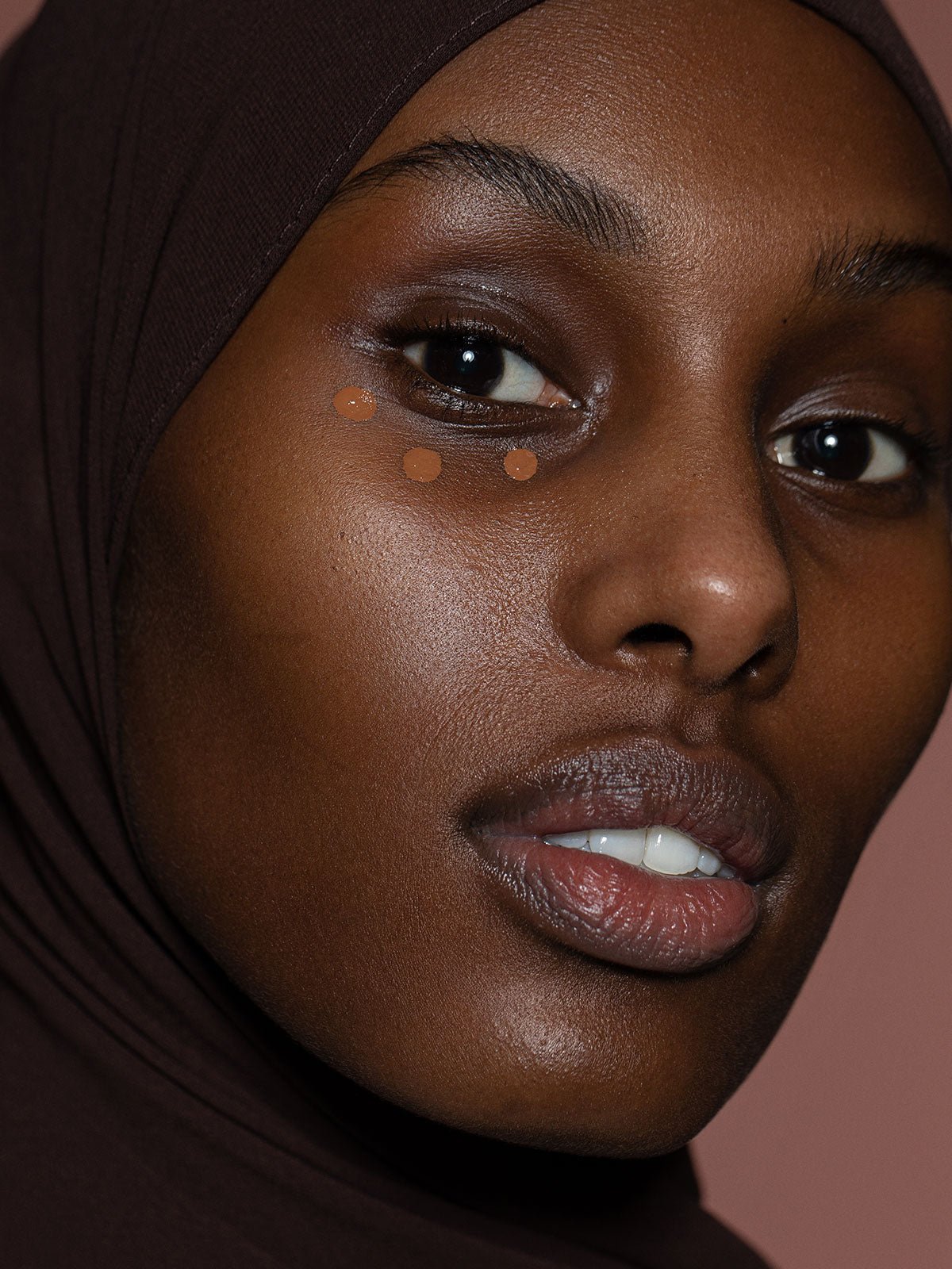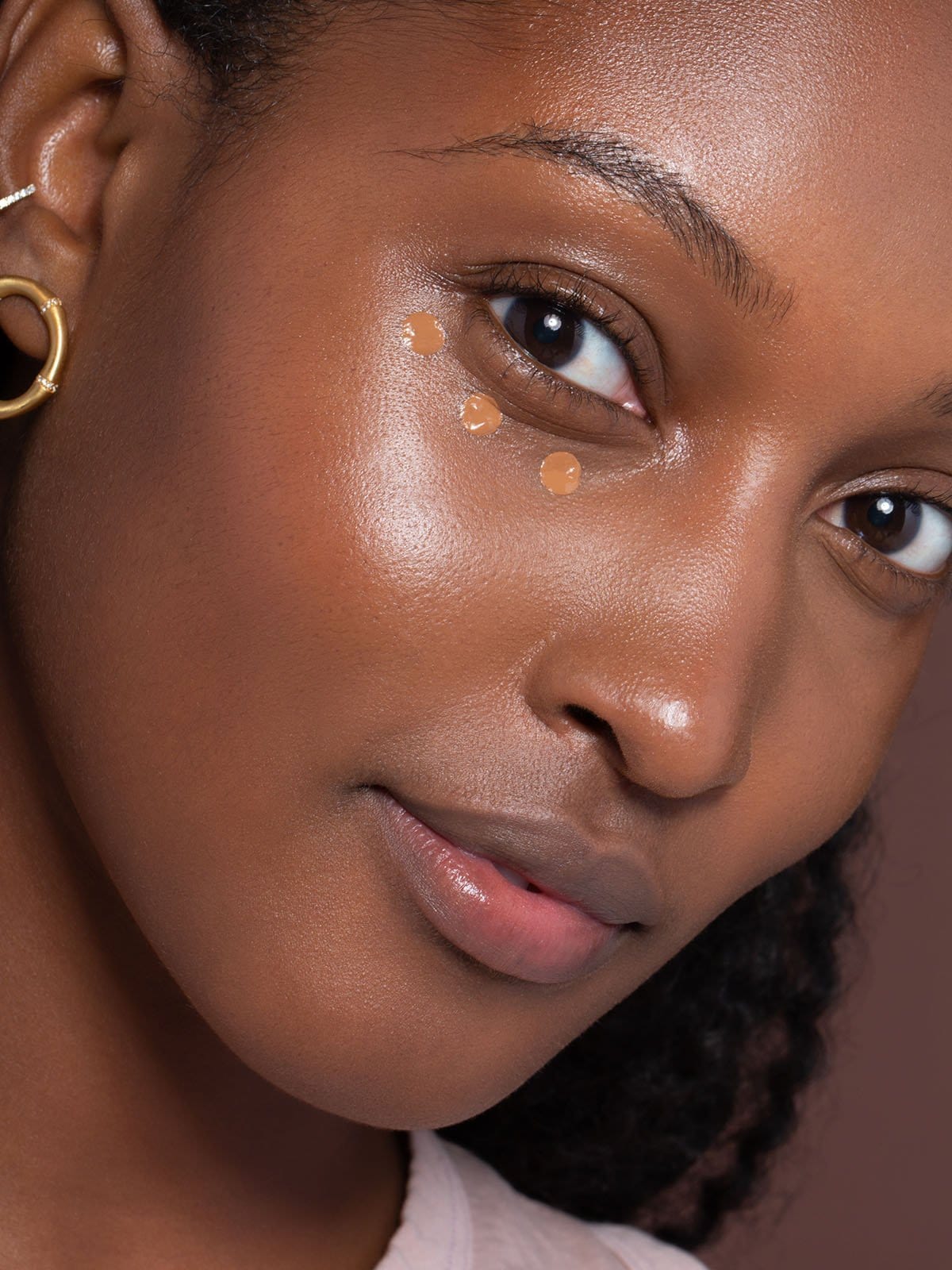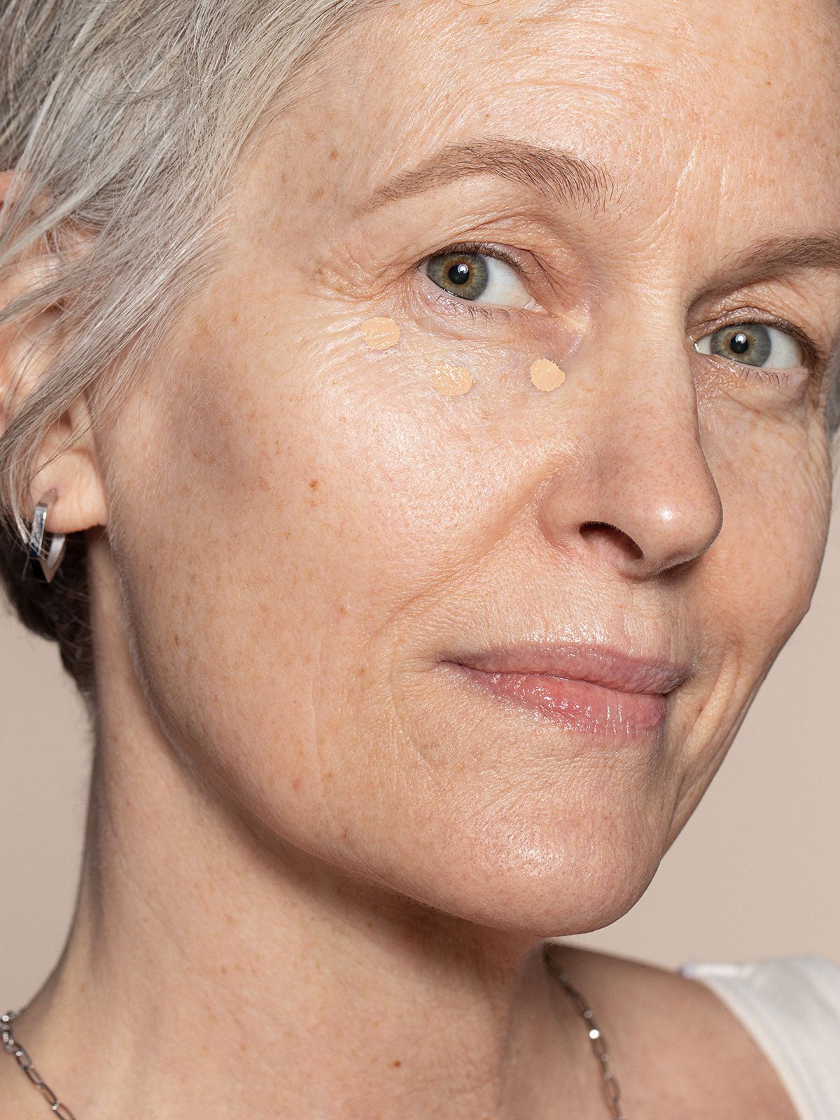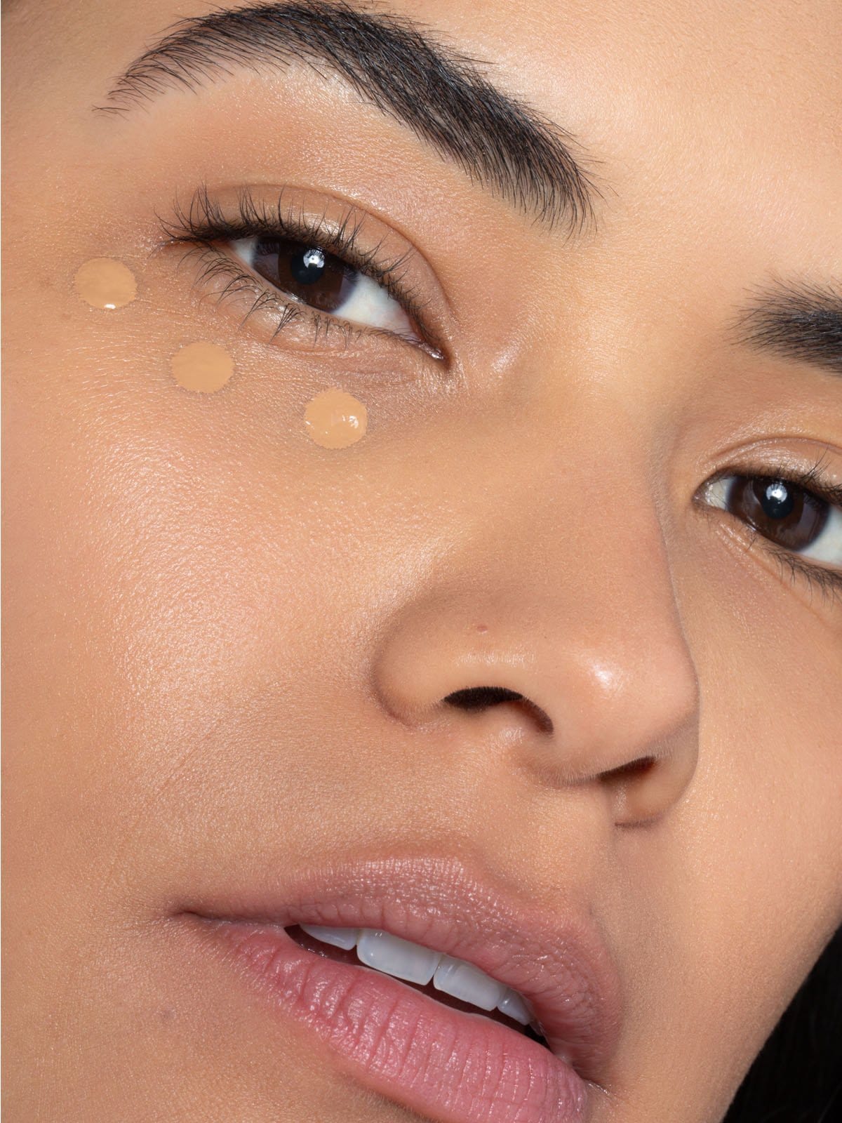 Aplicați 3 puncte de concealer sub ochi și în jurul oricăror zone pe care doriți să le uniformizați cu tonul pielii.